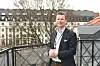 I fjerde etasje er det en balkong som er utover Solli plass. Andersen er fornøyd med bankens første år i Oslo.